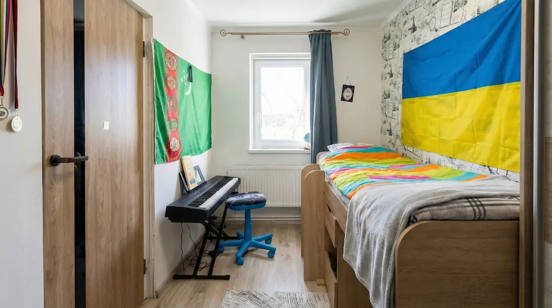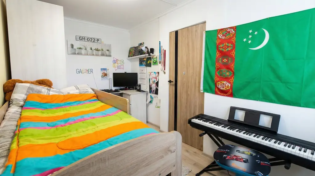 ліжко, місце для навчання/комп’ютера та зберігання речей — усе організовано зручно. Нейтральні стіни створюють “чисту базу” під будь-який стиль, а простір виглядає охайно й доглянуто. Заїжджайте та облаштовуйте під себе без зайвих витрат.