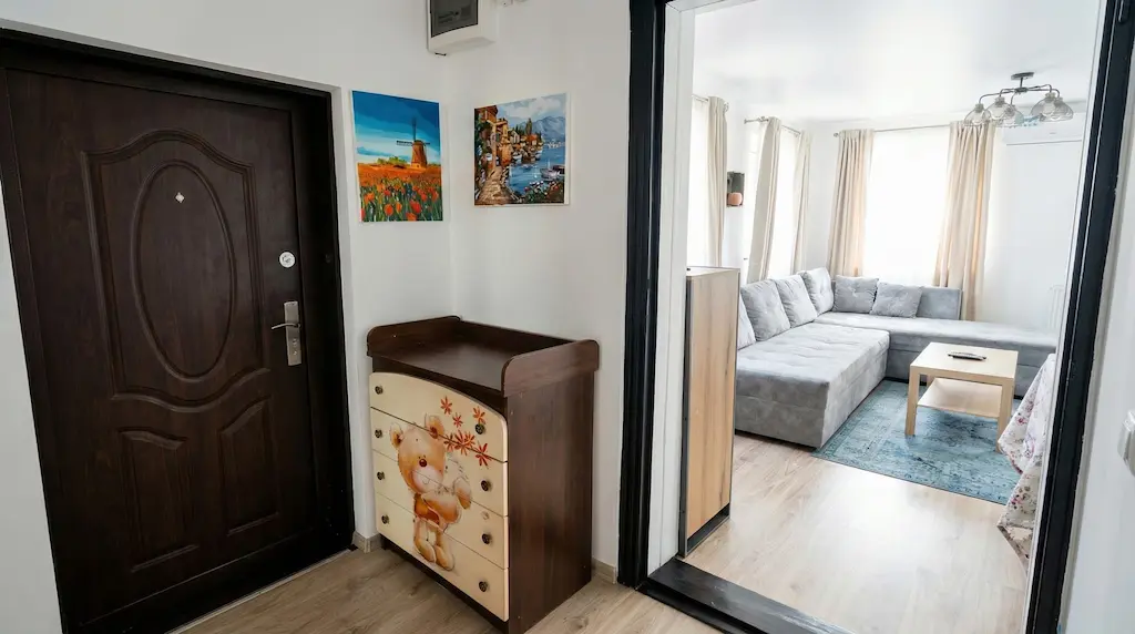де все продумано для комфорту. Світлі стіни, тепла підлога та акуратні деталі створюють відчуття “квартира з ремонтом під ключ”. Звідси зручно потрапляти в усі кімнати — планування дуже практичне.